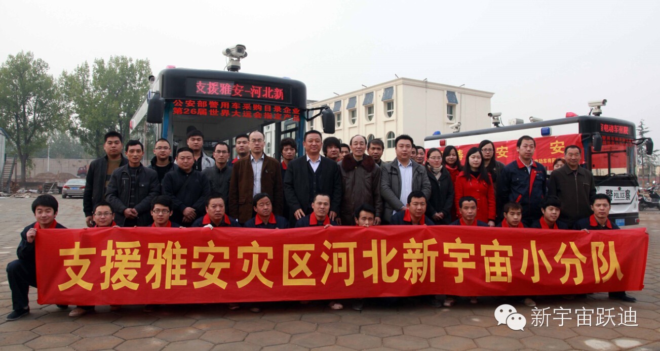 灾情牵动党中央、国务院的心,也牵动每一个中华儿女的心。习近平、李克强、张高丽等党和国家领导人先后亲临芦山视察,人民解放军和社会各界**时间赶赴灾区救援,跃迪集团董事长吕洪涛带领集团旗下河北新宇宙电动车有限公司部分员工迅速成立河北新宇宙救灾小分队**时间赶赴受灾现场,展开了一场气壮山河、感天动地的生命大救援、灾难大抢险、人员大安置、秩序大恢复的抗震救灾斗争,创造了世界同类型地震伤员救治零死亡、次生灾害零伤亡,大灾之后无大疫等一个个“芦山奇迹”。