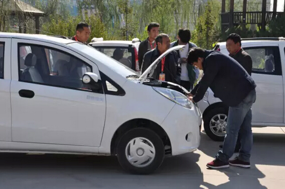 河北新宇宙电动车有限公司售后部部长方世伟与经销商沟通交流