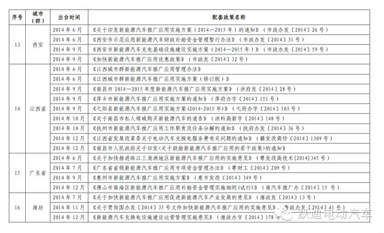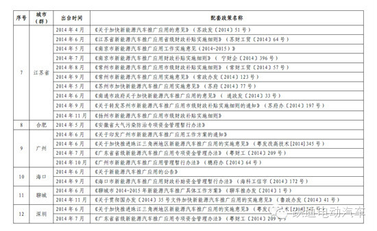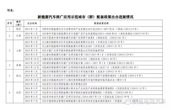 以下为新能源汽车推广应用示范城市(群)配套政策出台进展具体情况: